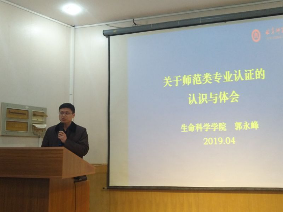 师范生寄予厚望。郭永峰老师为同学们分四大方面,系统的、详细的讲解了师范生专业认证的内涵、背景、理念、原则、标准、实施等相关内容。会议进行顺利,同学们聆听老师演讲,对接下来的工作充满信心,报告会圆满结束。