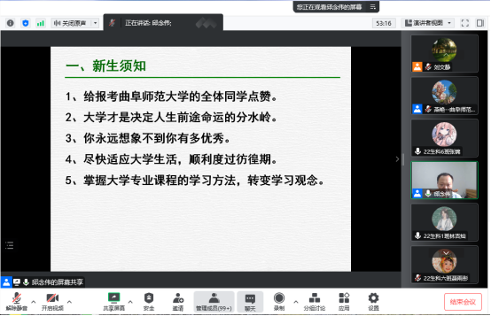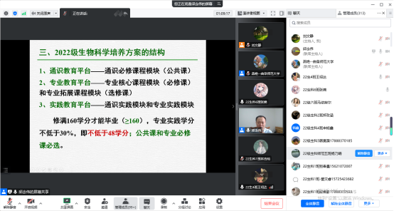 邱念伟教授、副教授燕艳老师,2022级生物科学专业全体新生参加了本次专业认知教育,会议由新生辅导员刘文静主持。
