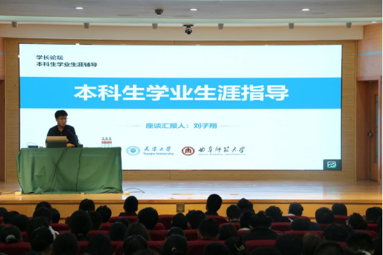 刘子翔分享了在学术研究上的心得与挑战,强调要积极主动探索知识,培养坚韧不拔的意志品质,树立终身学习观念。他以本科生学业生涯指导为主题,详细介绍了本科期间从大一至大四各阶段的学习规划,希望新生尽早制定计划、明确方向,做到有的放矢。刘子翔从自身学习方法、学生工作、科研竞赛等方面讲述了自己的成长历程,向新生分享了专业课程学习、科学研究、实验、考研学习等方面的宝贵经验和技巧。同时,他鼓励同学们要有意识地培养专业思维,保持良好的学习和生活习惯。