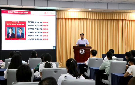 加强生物科学拔尖创新人才培养,涵养新时代青年学子科学家精神626下午,党委副书记、校长张洪海教授以弘扬科学家精神,培养基础学科拔尖创新人才”为主题,在科技楼弘道厅2023级卓越班讲授思想政治理论课