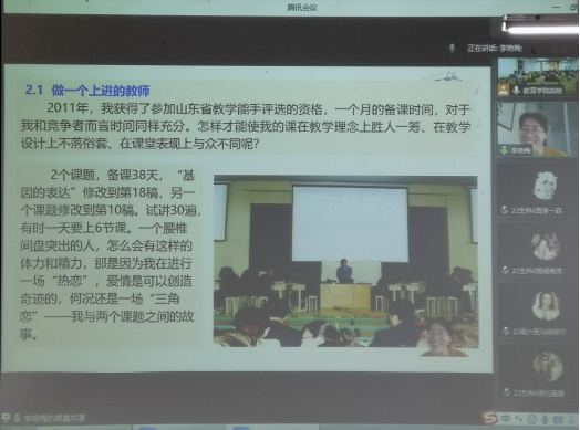 2022级生物科学(师范)专业学生分别做了题为“名师是怎么炼成的”“行则将至,未来可期——做一个拒绝‘躺平’的新时代师范生” “星光成长、未来可期”的线上讲座。讲座由院长助理燕艳主持。