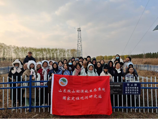 济宁市南四湖自然保护区服务中心高玉国部长及相关科研人员为同学们详细介绍了湿地生态系统在调节气候、净化水质、维护生物多样性等方面的重要作用,讲解了山东微山湖湿地生态系统国家定位观测研究站的站点布局、设备配置和观测情况。通过参观考察,学生们深入学习了湿地生态系统的定位观测和数据采集方法,掌握了实践技能、拓宽了学术视野。在野外观测中,学生们观察了如绿头鸭、斑嘴鸭、黑水鸡、白骨顶等越冬水鸟的生活情况。