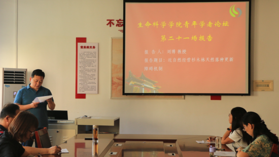 青年学者论坛第二十一场报告——刘博教授报告会于生物楼208室举行。刘博教授为大家带来了题为《近自然经营杉木林天然落种更新障碍机制》的报告,学院院长王仁君教授、副院长王庆贵教授、院长助理燕艳老师以及学院部分师生参加了本次活动,报告会由李玉建副教授主持。