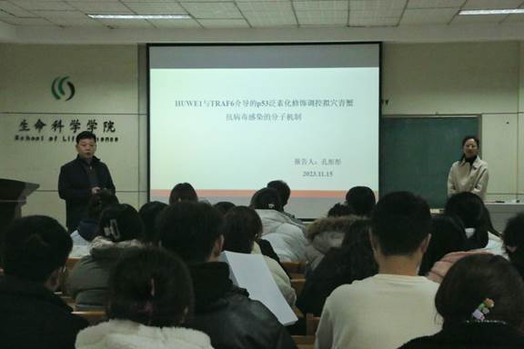 最后,孔彤彤博士介绍了下一步的研究计划,并对师生提出的问题进行了详细的解答。此次学术报告的成功举办,让大家对甲壳动物拟穴青蟹抵御白斑综合征病毒的感染作用机制有了更深刻的了解,开阔了师生的学术视野,其中的研究思路与方法也有助于大家进行科研创新,报告会在热烈的掌声中圆满落幕。