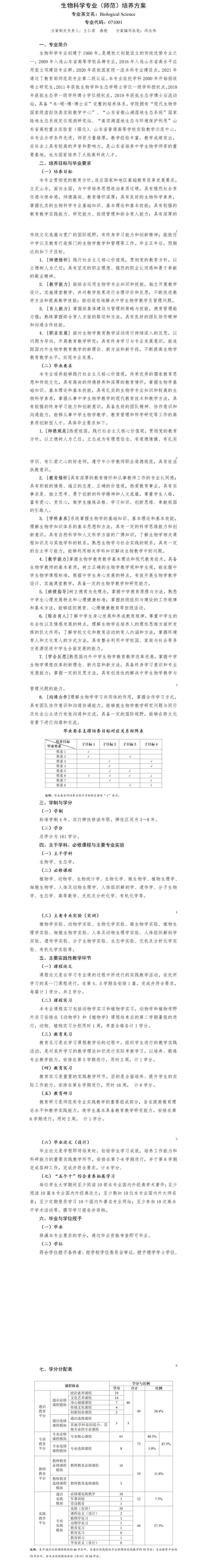 生物科学专业(师范)培养方案