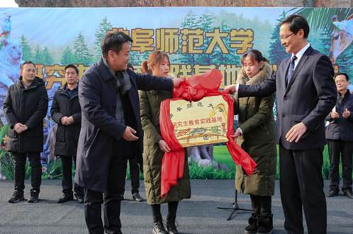 学校党委常委、副校长夏云杰在仪式上介绍了我校学位与研究生教育有关情况。他指出,自2005年起,曲阜师范大学与济南野生动物世界前身跑马岭野生动物世界一直有着良好的合作关系,在研究生培养、科学研究等方面取得了优秀成果。本次研究生实践教学基地的建立,是双方优势互补、资源共享、互惠互利、共同发展的重大举措,基地为研究生培育提供了更好的实践环境,学校也为实践基地输送了科学的技术支持,从而实现企业得到人才,学生得到技能,学校得到发展的合作共赢局面。