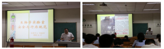 刘德坤作了题为“生物学实验室安全与行为规范”的讲座。刘老师结合自己多年的实验室安全工作实践,以大量的实验室安全隐患和事故图片为例,剖析了实验室事故的原因及实验安全的风险点,并提出了相应的控制措施。