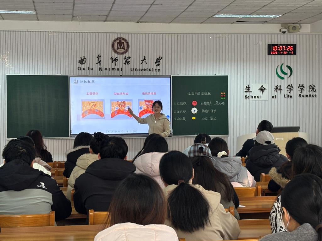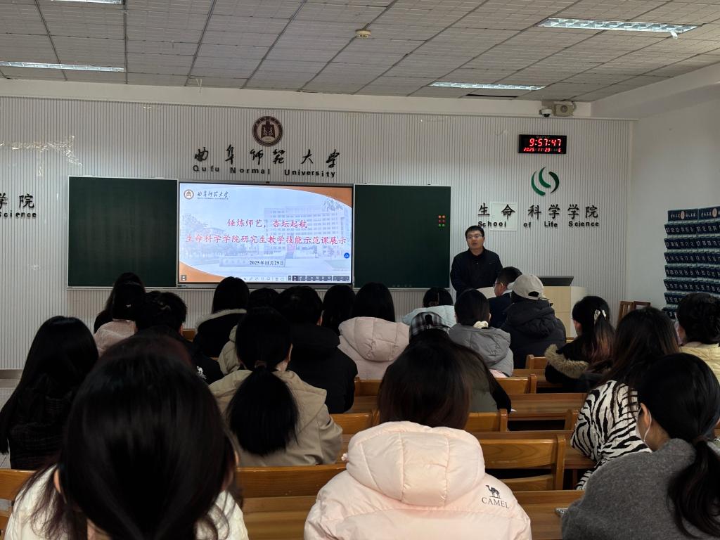 研究生教学技能示范课展示”活动。活动由院长助理赵超主持,研究生辅导员郭春晓、石鲁鹏及学科教学(生物)全体研究生参加。