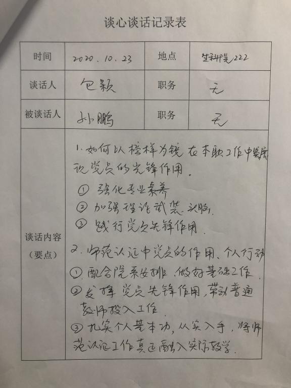 教工党支部开展“谈心谈话”活动。
