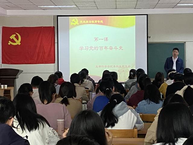 本科生党支部于生物楼232组织开展党史学习教育第一次专题学习,主题为学习党的百年奋斗史活动。本次活动由党支部书记杨申振主持。