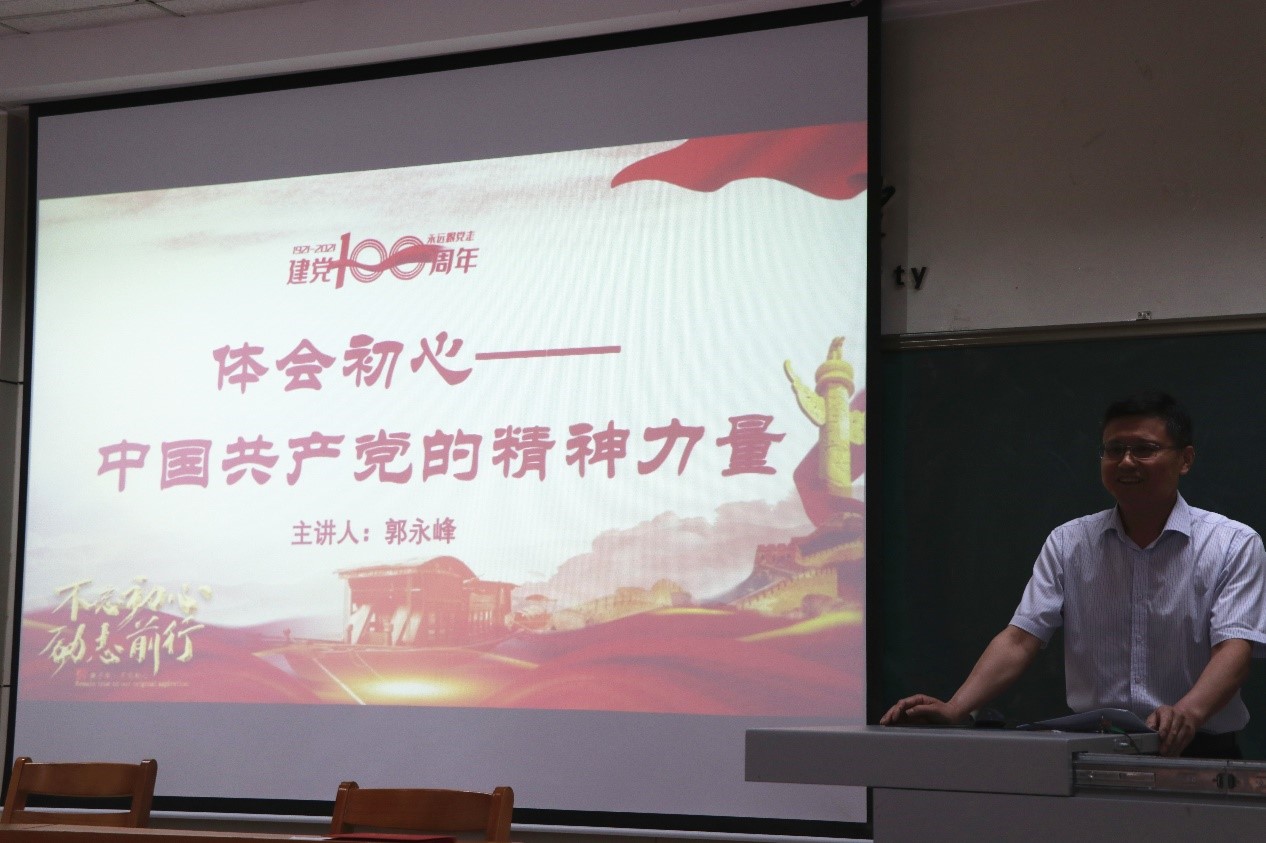 教工党支部书记郭永峰在生物楼232会议室为全体党员分享了主题为“体会初心——中国共产党的精神力量”的党课。