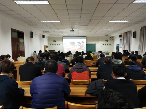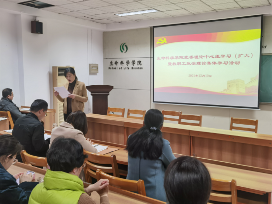 书记李志广主持学习活动,党委理论中心组全体成员、全体教职工参加学习会。