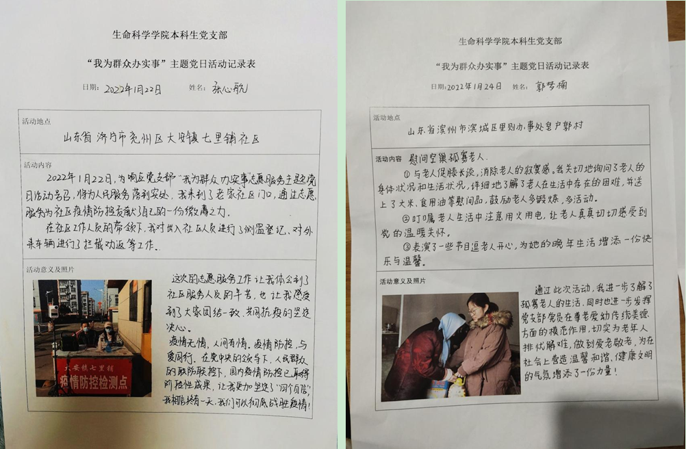 本科生党支部举办“我为群众办实事”志愿服务主题党日活动,组织学生党员以假期自主参与志愿服务的形式开展活动。此次活动面向支部全体党员。
