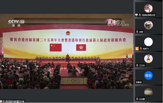 为庆祝香港回归祖国25周年,激励党员大力弘扬伟大建党精神,凝聚强大奋进力量, 7月7日上午,研究生党支部组织开展庆祝香港回归25周年线上主题党日活动,一同学习“习近平总书记在庆祝香港回归祖国25周年暨香港特别行政区第六届政府就职典礼上发表的重要讲话”。会议由研究生党支部书记燕艳主持,全体研究生党员参加。