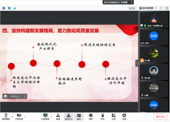 书记李志广主持。本次集中学习通过线上形式以“书记讲党课”的方式开展。党委理论学习中心组全体成员、全体教职工参加。