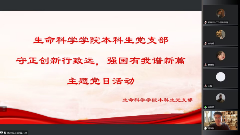 本科生党支部于线上举办“守正创新行致远,强国有我谱新篇”主题党日活动。本次活动由党支部书记杨申振同志主持。
