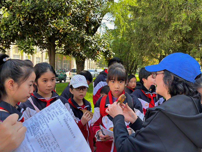 活动过程中,小学生们在各位老师的带领下,认识了多种校园植物,仔细观察了植物的特征,了解了植物名字的来历及其价值。在老师绘声绘色的描述下,同学们听的特别认真,并且能表达自己对植物的理解和感受。小朋友们亲眼观察,亲手触碰植物的叶、花、果实等,对植物产生更深刻的印象。在桃李园,他们在老师的引导下,对各种树木的树皮进行了拓印,亲身实践,感悟了自然之美。最后,全体师生来到体球网手机比分