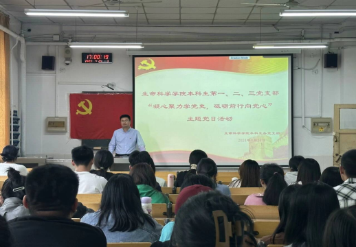 为深入学习贯彻习近平新时代中国特色社会主义思想,激励青年党员牢记党的初心使命,坚定理想信念,推进自我革命,切身把学习党史作为必修课和常修课,2024年4月24日,学院院本科生第一、二、三党支部于生物楼317室联合开展“凝心聚力学党史,砥砺前行向党心”主题党日活动。本次活动由本科生第一党支部书记杨申振同志主持。