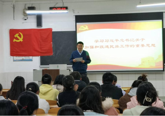杨申振同志带领支部党员共同学习了《习近平总书记关于加强和改进民族工作的重要思想》,分别就中国共产党高度重视民族工作,传承中华民族悠久深厚的文化历史,着眼于中华民族根本利益和整体利益等方面进行了详尽地学习与阐述。习近平总书记的重要讲话为党组织做好民族工作指明了方向,引导青年党员以此次学习为契机,进一步加深对讲话精神的理解,努力以自身能力推动学院发展。
