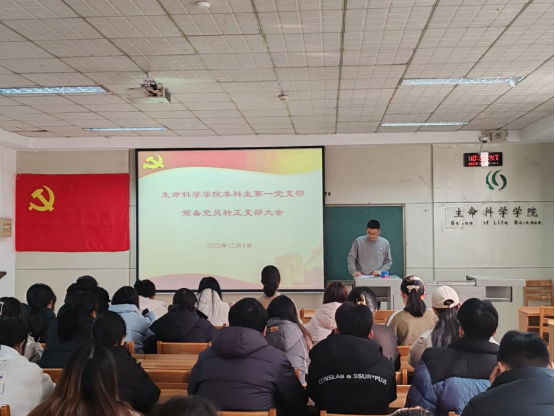 本科生第一党支部于生物楼232室召开预备党员转正支部大会,讨论、票决预备党员的转正问题。本次会议由第一党支部书记杨申振同志主持。