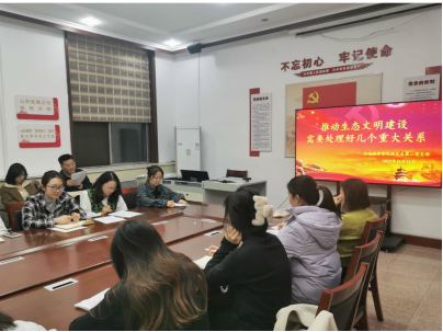 支部书记郭春晓同志带领全体党员学习习近平总书记发表在《求是》上的重要文章《推进生态文明建设需要处理好几个重大问题》。郭春晓同志指出,持续推进生态文明建设不仅是关系中华民族永续发展的根本大计,是关系党的使命宗旨的重大政治问题,更是关系民生福祉的重大社会问题。作为青年党员,要主动接过重担,共同发力,建设绿水青山家园,承担绿化祖国的责任。