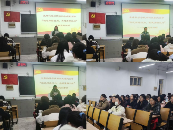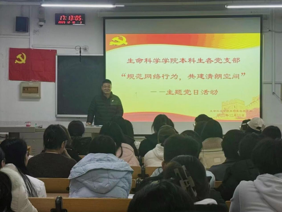 本科生第一、第二、第三党支部于生物楼317教室联合举办“规范网络行为,共建清朗空间”主题党日活动。
