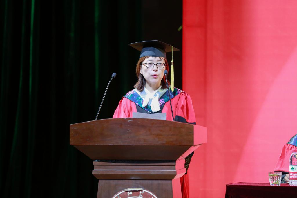 学院副院长王仁君教授宣读学位授予决定。根据《曲阜师范大学博士、硕士学位授予工作细则》《曲阜师范大学学士学位授予细则》,经学校学位评定委员会研究审议,共有2名研究生获得博士学位、50名研究生获得硕士学位、441名本科生获得学士学位。