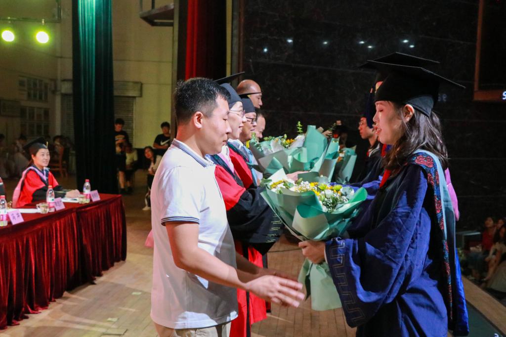 2021年优秀研究生指导教师名单。研究生代表走上台前,深情向各位老师献上鲜花,表达敬意,现场温情流动,情谊感人。