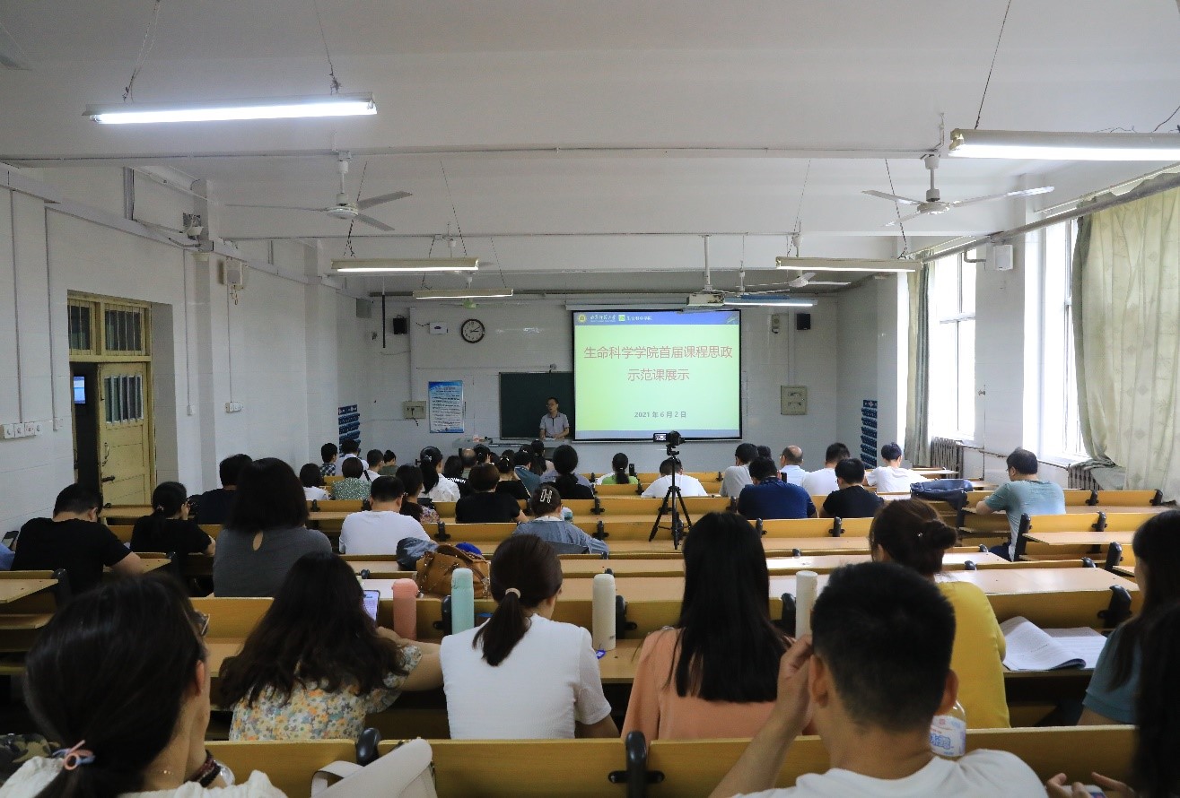 随后,徐金会老师、刘柏玲老师和甘延东老师分别为大家带来“课程思政”示范课展示。徐金会老师讲授“静息电位及产生机制”、刘柏玲老师讲授“开花和传粉”、甘延东老师讲授“热力学第一定律”。现场气氛热烈,台上台下互动交流,老师纷纷感慨收获良多,意犹未尽。