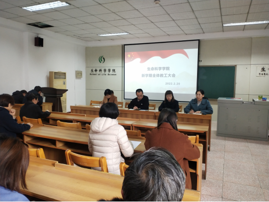 2月20日下午,学院在生物楼232教室召开新学期教工大会。会议由院党委副书记张明洁主持,全体教职工参加会议。