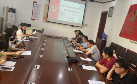 会议分为两个阶段。第一个阶段是编写提交持续改进材料的会议。燕艳向各业任课老师详细解读了“关于印发《高等学校师范类专业认证状态保持监控办法(试行)》的通知”,就2021-2022年度师范专业认证持续改进报备的各项材料的准备和提交做出了详细安排。院长王仁君对材料的提供提出具体要求,她希望老师们严格按师范认证持续改进的要求认真准备课程评价材料,保证持续改进情况报备工作的顺利完成。