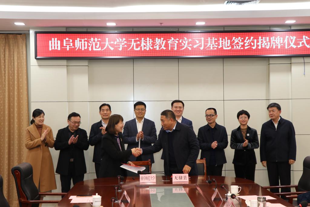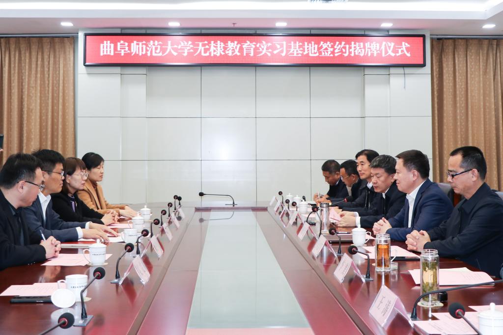 仪式上,卢国强与郑振亮共同为“曲阜师范大学-无棣县教育实习基地”揭牌,校企双方签订教育实习基地建设协议。