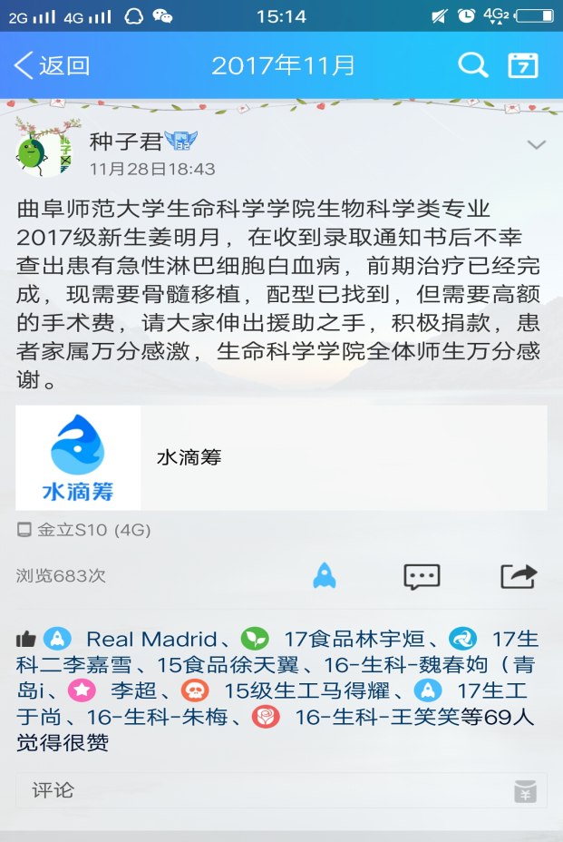 2017级新生姜明月同学的全校范围内的爱心募捐活动已经结束。