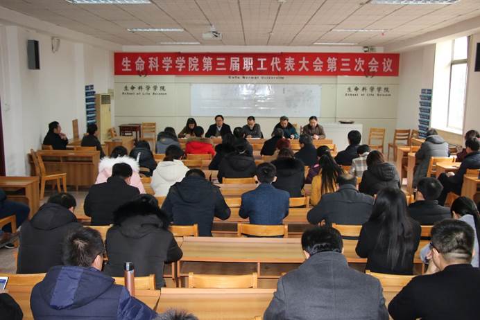 201911915时,体球网手机比分 第三届教职工代表大会第三次会议在生物楼二楼多媒体教室隆重召开。体球网手机比分 党委书记李志广、院长杨月伟、党委副书记赵强、副院长赵云峰、王仁君以及体球网手机比分 教职工代表出席会议。会议由党委书记李志广主持。