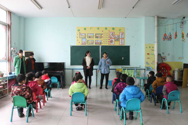 一进入幼儿园,志愿者们就受到了小朋友的热烈欢迎,他们带着天真的笑容好奇地向大哥哥、大姐姐们询问各种问题。在一片欢声笑语中,第一堂课开始啦。志愿者的同学们生动形象地为小朋友了讲解用电安全以及用大灰狼与小白兔的故事阐述户外人身安全的常识。课堂中,小朋友们的活泼可爱与志愿者的诙谐幽默极大地活跃了课堂氛围,同时课堂上的互动也拉进了大家的距离,使得安全知识牢记在小朋友们的心中。