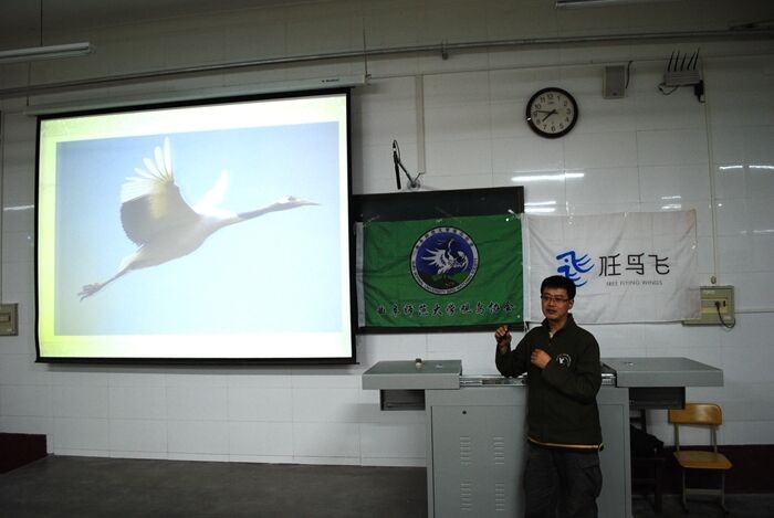 观鸟协会特邀东北林业大学吴庆明博士作《青头潜鸭,你在哪里?——松嫩平原上的寻寻觅觅》和《美丽中国的美丽大鸟——丹顶鹤》为主题的讲座。