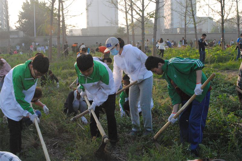 活动从早晨6点开始,参与活动的所有成员按照要求在规定时间到达指定地点。整齐的队伍显示出生科学子昂扬向上的精神风貌,面对杂草丛生的场地,同学们不但没有退缩,反而表现出了高昂的热情。所有人被分为八个小组,在老师的带领下,认真积极的参与除草活动。活动开始前,老师向同学们教授了除草工具的使用方法,并再三叮嘱同学注意安全,还细心的为同学们准备了防蚊虫叮咬剂。老师们以身作则,同学们奋勇争先,少许时间便清理出一大片空地。学生们还借此机会认真的向老师请教关于植物学的各种专业知识,和老师探讨大学生活中的各种感悟体会,现场气氛融洽而热烈。尽管顶着炎炎烈日,但同学们的脸上都洋溢着劳动后的快乐与满足。