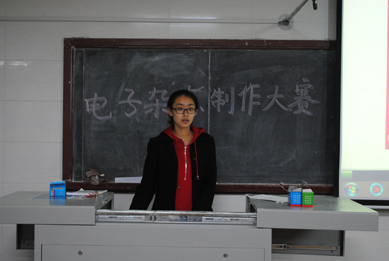比赛伊始,由主持人介绍各位评委及比赛流程,然后选手们开始展示他们的作品。选手通过精心制作的电子杂志和精彩的解说展示了网络对世界祖国和人民的影响,用别样的方式带我们领略了美食的美味,美景的魅力,歌曲的多样性。他们准备充分,精神饱满,通过亲手制作的电子杂志,展示了新时代大学生的内涵和风采,赢得了观众的阵阵掌声。展示完作品后,由各队派一名代表上台演讲,最后由评委为参赛选手们打分并对此次比赛做出了点评。