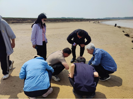 考察组一行在高村游荡型滩涂实地探讨科学研究方案