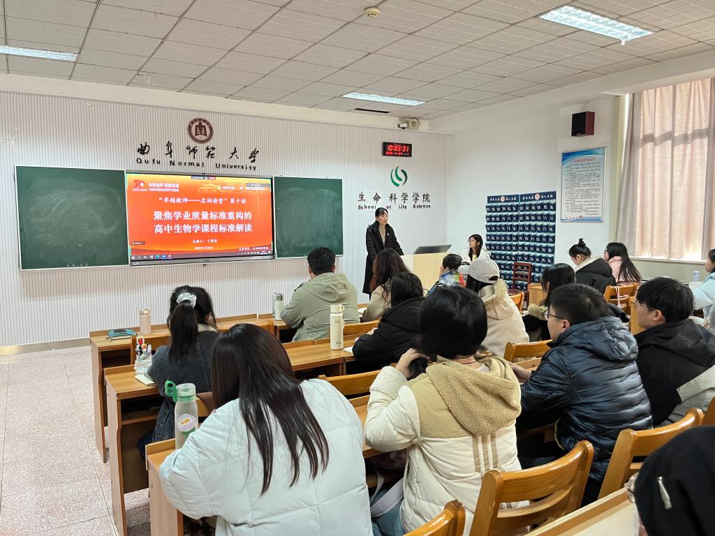 为了解最新的中学生物学课程标准,培养学生的综合素质和创新能力,11月24日上午,学院举办庆祝建校七十周年“弦歌七秩 ‘质’敬教育”教学质量提升行动系列报告暨“卓越教师—启润讲堂”第十讲报告会。报告邀请西南大学丁奕然博士作题为《聚焦学业质量标准重构的高中生物学课程标准解读》的专题报告。学院学科教学(生物)研究生导师、学科教学(生物)全体研究生及生物科学(师范)专业的部分本科生参加了报告会。报告会由副院长燕艳主持。