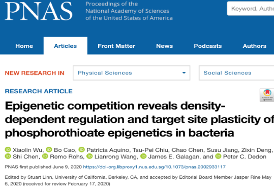 第一篇论文题为“Nick-seq for single-nucleotide resolution genomic maps of DNA modifications and damage” (doi: 10.1093/nar/gkaa473),发表在《Nucleic Acids Research》上,曹博教授为第一作者与通讯作者,曲阜师范大学为第一署名单位;第二篇论文题为“Epigenetic competition reveals density-dependent regulation and target site plasticity of phosphorothioate epigenetics in bacteria”(doi:10.1073/pnas.2002933117), 发表在《Proc. Natl. Acad. Sci.》上,曹博教授为共同第一作者,曲阜师范大学为共同署名单位。