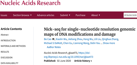 曹博教授团队与麻省理工学院、武汉大学等单位合作,在DNA表观遗传学研究方向取得突破性进展,研究成果分别发表于著名国际期刊《Nucleic Acids Research》(影响因子: 11.147)和《Proc. Natl. Acad. Sci.》(影响因子: 9.58)。