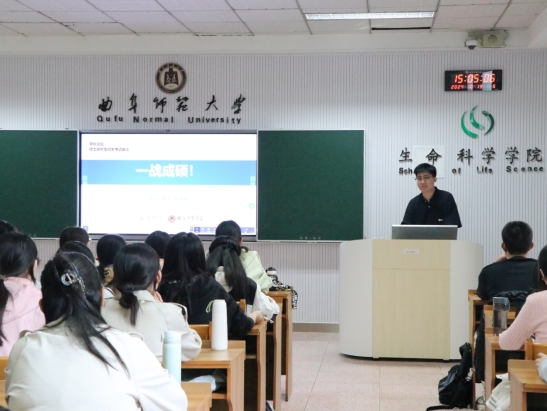 “星光引路,逐梦前行”考研交流会于生物楼232教室举办,此次活动邀请到了2016级生物工程专业刘子翔师哥与大家进行考研经验分享交流,活动由团委书记刘文静主持。