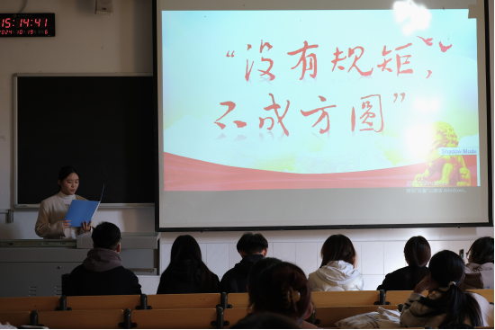 在主持人坚定而有力的声音中,比赛正式开始。紧张而充满期待的气氛在教室中弥漫开来,参赛选手们带着自信和激情,按照抽签顺序逐一登台。他们的声音各具特色:有的洪亮而充满感染力,有的柔和而富有吸引力,有的抑扬顿挫、节奏感强烈。选手们的演讲稿同样精彩纷呈,内容深刻,结构严谨,以不同的视角和方式,层层深入地展现了宪法的重要性。在演讲过程中,选手们巧妙地运用PPT和背景音乐来增强表达效果,将情感和信息完美融合,深深地打动了在场的每一个人。选手们的精彩演讲清晰地讲述了对宪法的理解,引起了评委和观众的强烈共鸣,赢得了阵阵掌声。