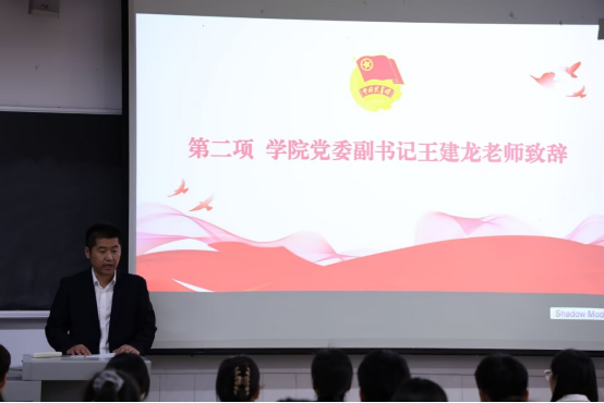 副书记王建龙为开班仪式致辞。他指出,学生骨干发挥着沟通桥梁、榜样示范、组织凝聚的作用,青马学员作为学生骨干的典型代表,要用一言一行加强自身建设,争做学习榜样,塑造“青马工程”学员的优良形象。希望全体学员以本次培训为起点,全方位提升政治素养和实践水平,做到学有所思、学有所获、学有所成。