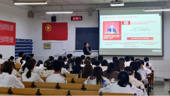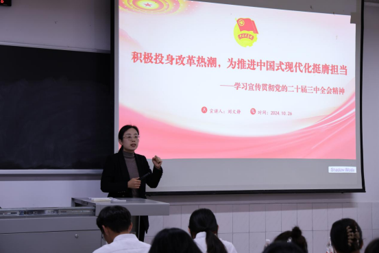 开班仪式后,共青团山东省委学习宣传贯彻党的二十届三中全会精神青年讲师团成员、学院团委书记刘文静以《积极投身改革热潮,为中国式现代化挺膺担当》为题作第一讲授课。她从“深刻认识全会的重大意义和主要精神”““改革引领青年,改革为了青年””“青年为推进中国式现代化挺膺担当”三个层面,深入解读了党的二十届三中全会精神的核心要义、进一步全面深化改革的必要性和总体要求,改革为青年创造机遇和发展空间,强调新时代青年应与祖国同频共振,与时代同向同行。作为青年大学生,要深入学习领会全会精神,坚定听党话、跟党走的政治信念,在推进强国建设、民族复兴伟业中展现青春作为、彰显青春风采、贡献青春力量,奋力书写为中国式现代化挺膺担当的青春篇章。