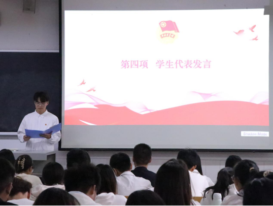 王延峰作为“先锋班”学员代表发言。他表示,青马班是一个提供学习机会和助力成长的平台,号召全体学员以最饱满的热情投入到学习和实践当中去,完成学院青马工程课程任务的同时,积极参与社会实践,将所学知识转化为实际行动,学以致用,争做青年先锋。