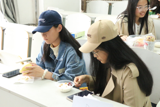 第二天,同学们再次来到综合楼106。这一次,他们要利用水果、饼干、桂花等材料对自己制作的酸奶进行创意装饰。现场气氛和谐而热烈,同学们的创意层出不穷,充分展现了体球网手机比分