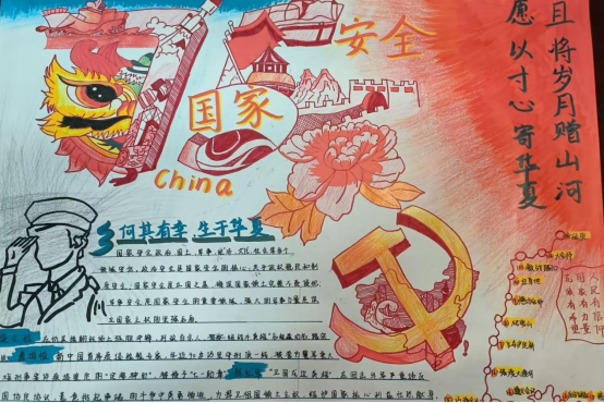 本次“国家安全,人人有责”手抄报大赛活动,不仅深入宣传了总体国家安全观,提升了同学们的国家安全意识,更重要的是激发了同学们的爱国热情,培养了同学们维护国家安全的责任感和使命感。对于构建总体国家安全观具有重要意义,更有助于学生们将国家安全意识内化于心、外化于行,在日常生活中更加自主自觉地维护国家安全。
