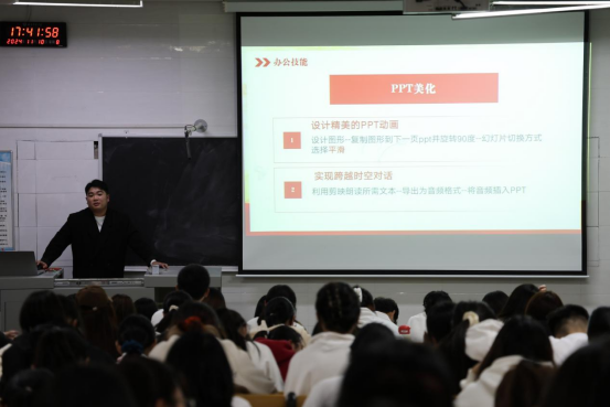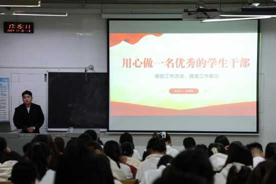 本次授课,王良凯以“用心做一名优秀的学生干部”为题,围绕信息数据的收集获取方法、学生活动从策划到总结的闭环管理、新闻与总结撰写、如何进行工作汇报展示等四个方面,与学员们全面分享了学生工作常用办公技能。分享交流中,王良凯结合学生工作常见问题,进行了部分办公技能的实操展示,并进行了现场一对一指导。